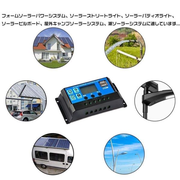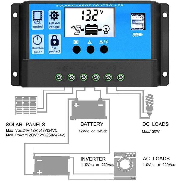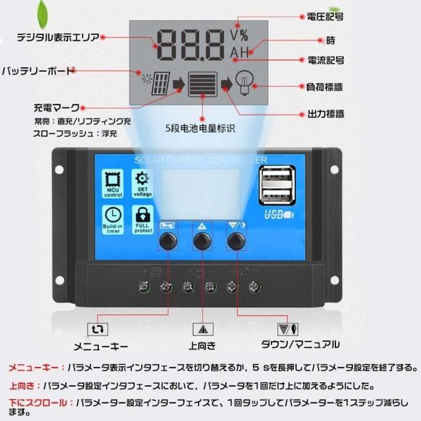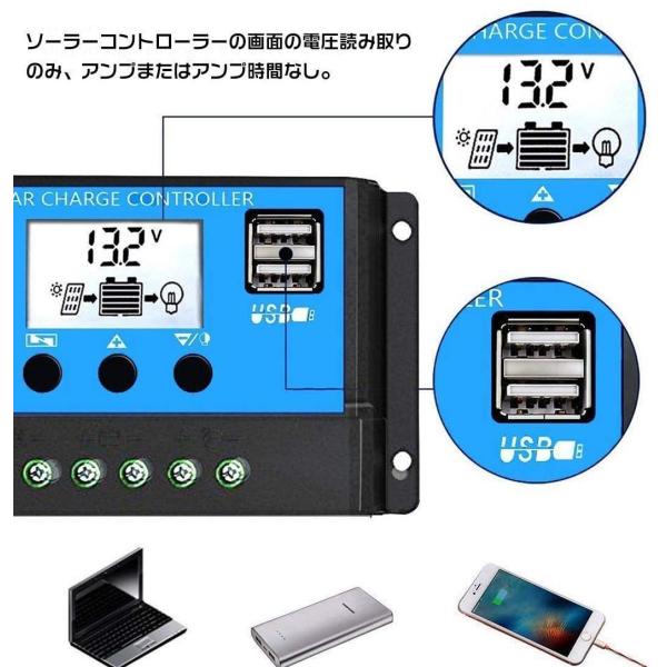 30A PWM 12V/24V LCD ソーラーパネル チャージコントローラー、デュアル USB ソーラーパネル バッテリーレギュレーター 充放電圧調整 スイッチ 過負荷保護