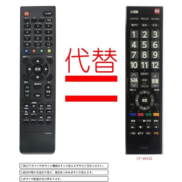 TOSHIBA REGZA 東芝 レグザ 液晶テレビ用リモコン CT-90422 CT-90422E 設定不要 かんたん操作