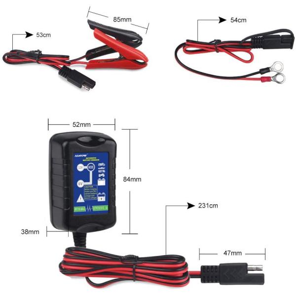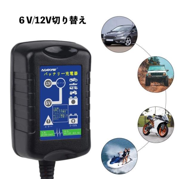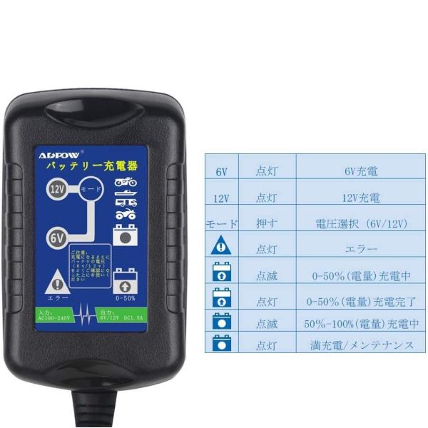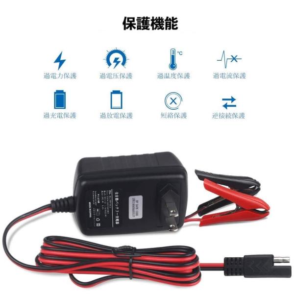 6V/12V 自動車 バイク用 バッテリー充電器 コンセントチャージャー LEDランプ 逆接続/ショート/過電圧/過電流保護