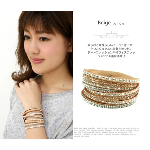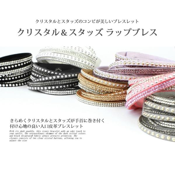 ラップブレスレット 2連 クリスタル ダブルラップブレス スタッズ ブレスレット