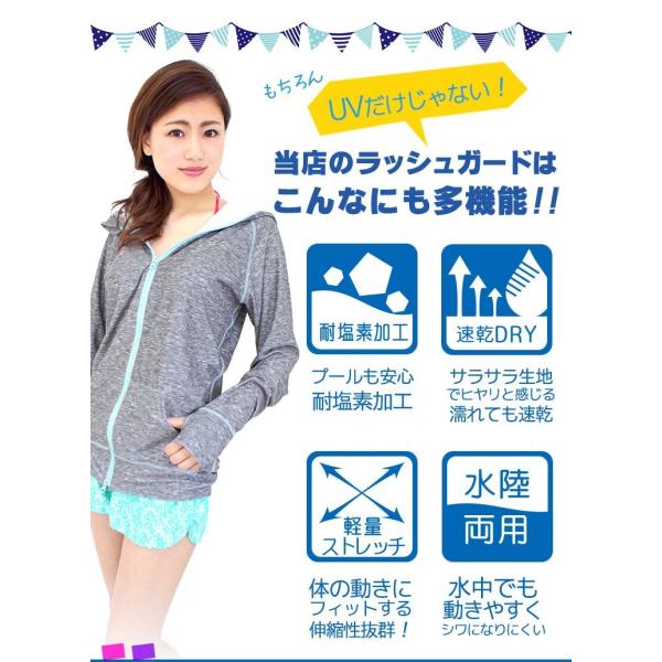 ラッシュガード レディース パーカー おしゃれにUV対策 ジップアップ ラッシュパーカー 水着 日焼け止め [ゆうパケット発送]