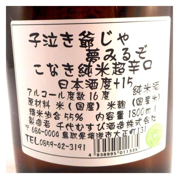 ギフト プレゼント 日本酒 こなき 純米 超辛口 1800ml 鳥取県 千代むすび酒造