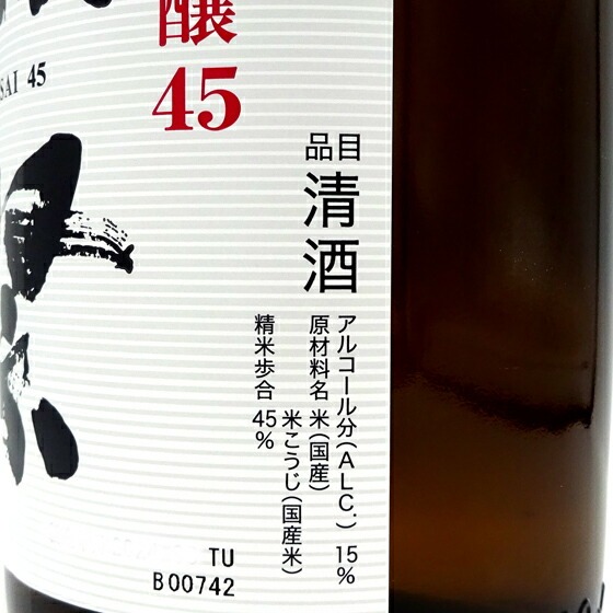 山田錦を45%まで磨きました。米由来の繊細な甘みと華やかな香りが特徴です。
