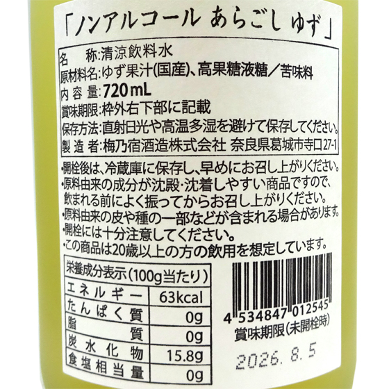 梅乃宿 ノンアルコール あらごしゆず 720ml