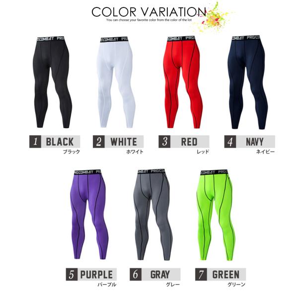 シンプル カラー コンプレッション タイツ 速乾 超軽量 メンズ レギンス ブラック 無地 スポーツ インナー パンツ ロング トレーニング ウェア フィットネス ウエア 機能性 運動着 ズボン 黒 ブラック 白 ホワイト ボトムス ファッション