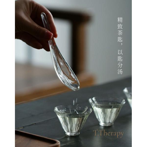 唐宋点茶法 碗のお茶淹れ ガラス 茶碗(ハイビスカス)+蓮華れんげ 2点セット