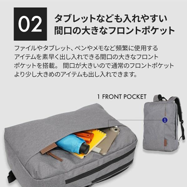 ・タブレットなども入れやすい間口の大きなフロントポケット