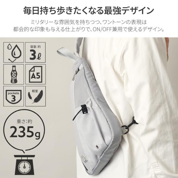 ON/OFF兼用 で 幅広く使える ボディバッグです。