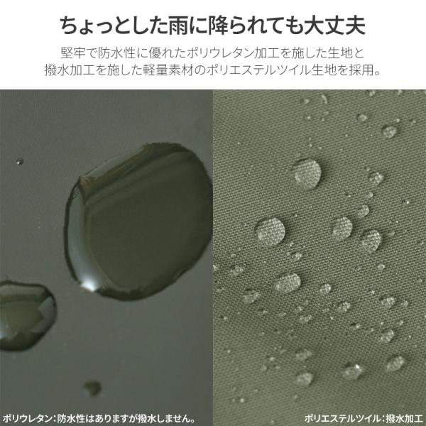 堅牢で防水性に優れたポリウレタン加工を施した生地を採用し、