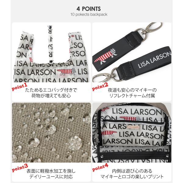 【公式】LISA LARSON リサラーソン リュックサック バックパック デイパック スリム 北欧デザイン エコバッグ チャーム 猫 LTPK-12