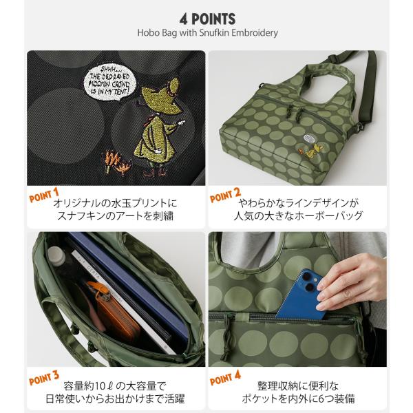 【公式】MOOMIN ムーミン スナフキン 刺繍 トートバッグ ホーボーバッグ 水玉 ドット ショルダーストラップ付き 北欧デザイン RMMC-04