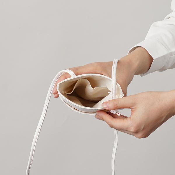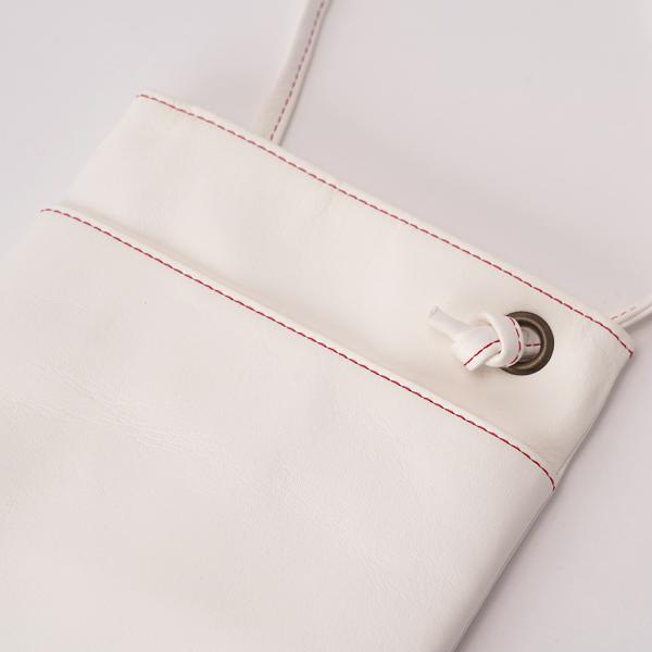 ユニークな 白い タテ型のミニショルダーバッグ。