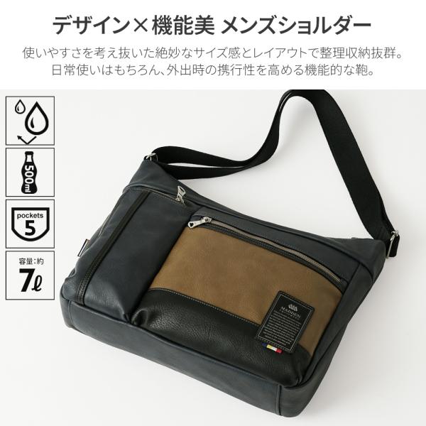 【メーカー公式】 MADDEN eq ビアンキ の 後継品 ショルダーバッグ メンズ 耐水性 フェイクレザー 合成皮革 防水 大きい TMPI-19