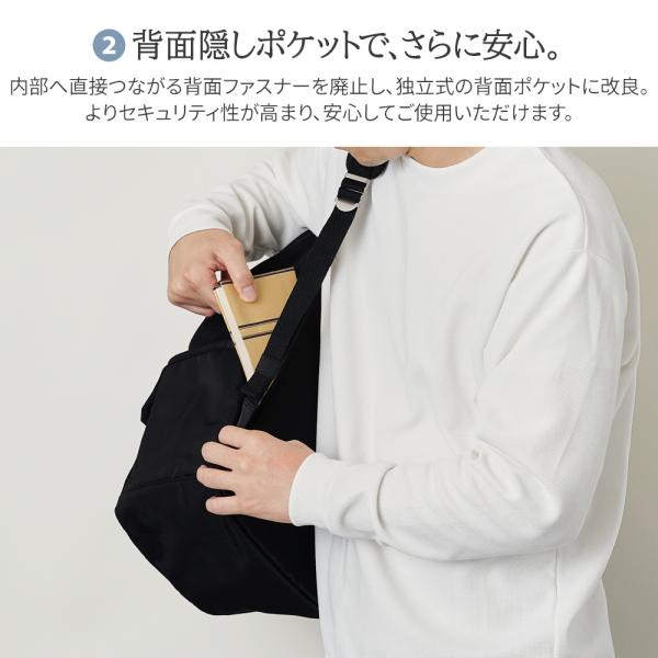 さらに 背面 には セキュリティ性 の 高い 独立 ファスナーポケット を 搭載。