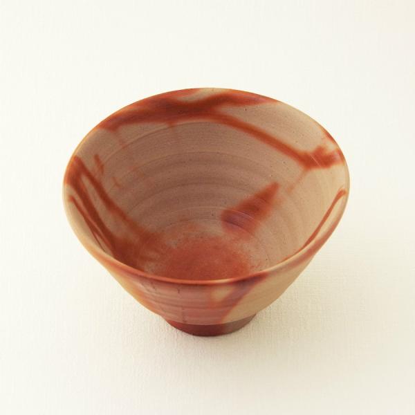 焼き色は、お米の藁を使って部分的に赤い模様(緋襷)をつけています。大森さんは京都で修行をしているため、備前焼のなかでは薄手でどこか洗練された印象のフォルムが特徴です。
