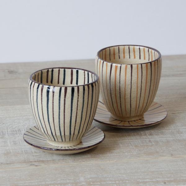 そんな瀬戸で古くから描かれている模様が、こちらの二色十草。シンプルな縦縞は古典的ながら、時代を超えて愛され続けている普遍性があります。これぞ日本の焼き物、という雰囲気をまとった器です。