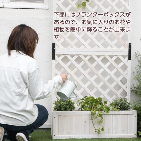 ラティスフェンス 木製 おしゃれ ナチュラル プランターラック アンティーク調 フラワースタンド シャビー フレンチ ホワイト 花壇 玄関 鉢植え 目隠し 倉出し