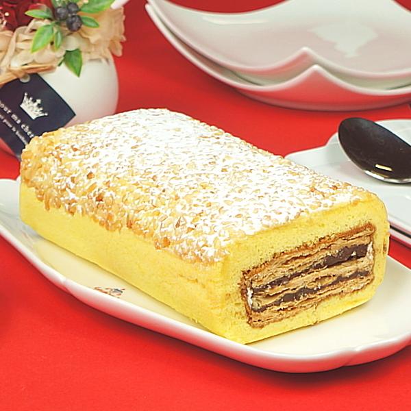 ●チロル:濃厚なチョコレートをロールの中央に配置し、それを相性の良いパイ生地で包み、さらにそれをスポンジ生地と生クリームで包み込んだ逸品。一言では言い表せない味に仕上がっております。