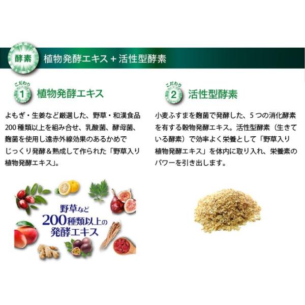 「イースト×エンザイムダイエット」は、野草など200種類以上の植物から作られた植物発酵エキスに活性型酵素(穀物発酵エキス)を組み合わせたサプリメントです。