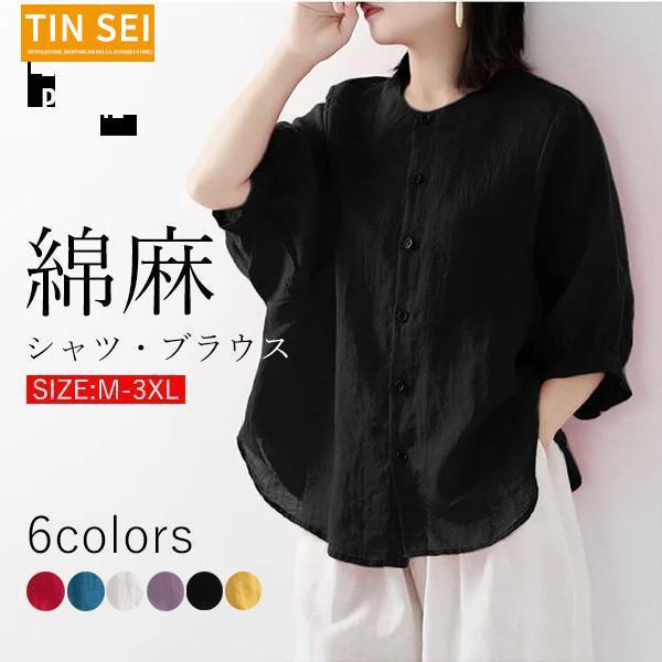 リネンシャツ 綿麻 ブラウス レディース シャツ カジュアルシャツ バルーンスリーブ コットン シンプル ゆったり おしゃれ 細身 着痩せ 涼しい 吸汗速乾
