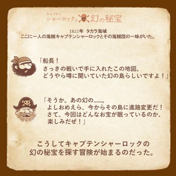 こうしてキャプテンシャーロックの幻の秘宝を探す冒険が始まるのだった。