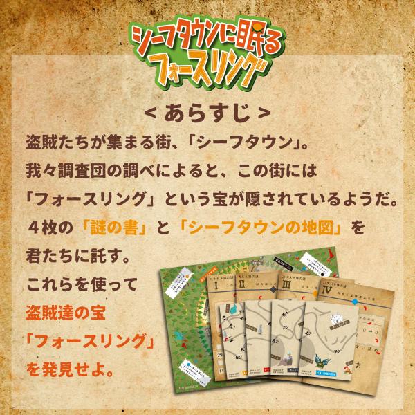 また、1人で遊ぶだけでなく「シーフタウンに眠るフォースリング(おうちde公演型謎解き宝探しver.)」