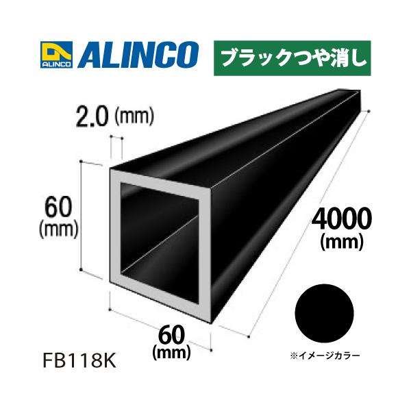 アルインコ アルミ角パイプ 1本 60×60×2.0t 長さ:4m カラー:ブラックつや消し FB118K 重量:5.01kg 汎用材 アルミ型材