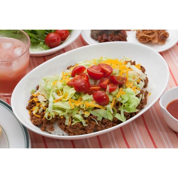 原材料 : タコスミート:食肉(牛肉、豚肉)、玉ねぎ、粒状大豆たん白、しょうゆ、牛脂、香辛料、おろしにんにく、砂糖、コンソメ、調味エキス、食塩、かつお風味だし/調味料(アミノ酸等)、カラメル色素、酸味料、(一部に小麦、乳成分、牛肉、豚肉、大豆を含む)