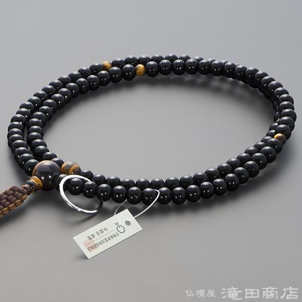 数珠 曹洞宗 男性用 艶あり黒檀 虎目石仕立 尺2 宗派別念珠 数珠袋付き