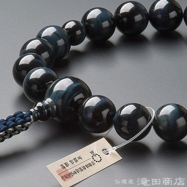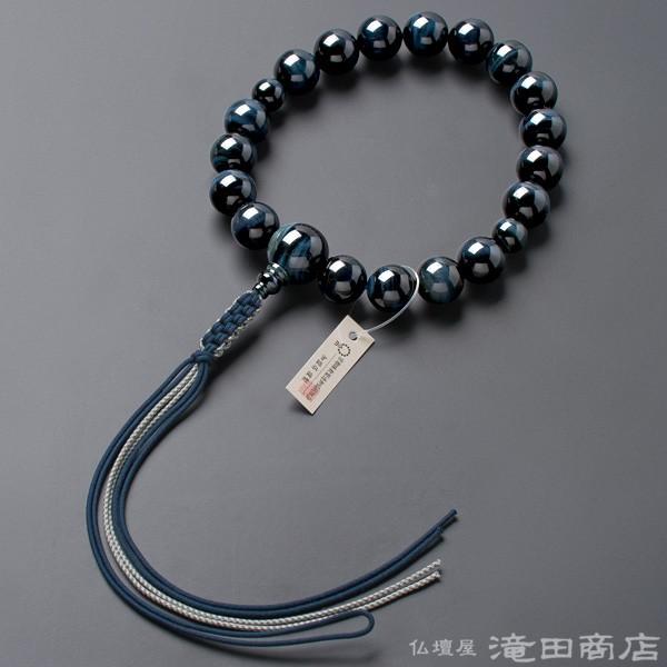 数珠 浄土真宗 男性用 青虎目石 18玉 宗派別念珠 数珠袋付き