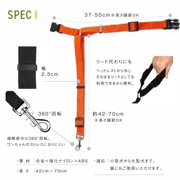 犬 シートベルト 犬猫 ペット用 ヘッドレスト装着 ナスカン フック ベルト調整可能 リード 車用リード 犬用リード ドライブグッズ 送料無料
