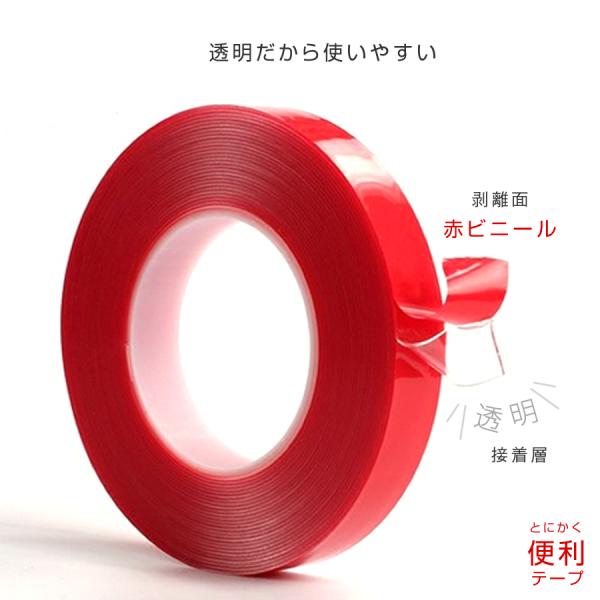 強力 両面テープ 幅 12mm 18mm 長さ3m 透明 ドアバイザー DIYテープ 車用 剥がせる 超強力 魔法のテープ 送料無料