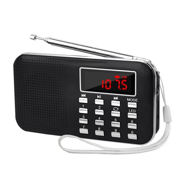 LEFON 充電式 多機能 AM FMポケットラジオ USB.microSDカード対応 MP3プレーヤー LEDライト ポータブルラジオ (黒い)