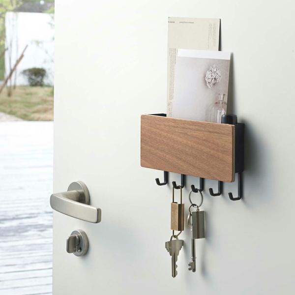 印鑑やDMが収納可能なマグネットキーフック。5つのフックで普段使う鍵類など一括収納が可能。ちょっとした小物入れに便利なホルダー機能付きキーフックです。