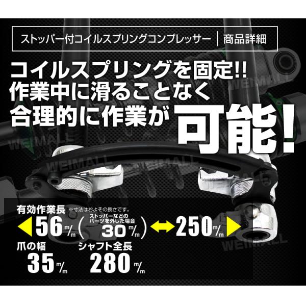 爪の滑り・外れ防止ストッパー付きのコイルスプリングコンプレッサーです。