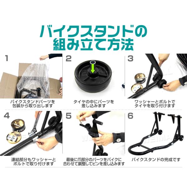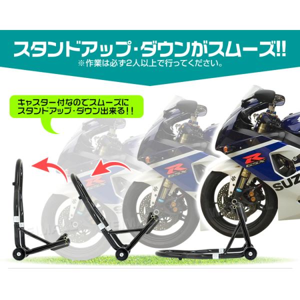 バイクスタンド フロント用 積載能力550LBS 250kg キャスター付き 保護ゴムラバー付き バイクリフト メンテナンススタンド