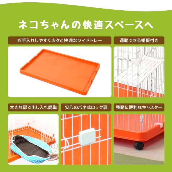 猫 ケージ ワイドトレー 3段 キャットケージ 猫用ケージ キャスター付き 棚板付き バネ式ロック 簡単組立 ペットケージ ペット おしゃれ