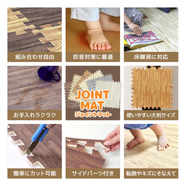 ジョイントマット 木目調 北欧 大判 6畳 32枚 60cm ベビー マット 防音 騒音 吸収 厚さ10mm 1級防音 赤ちゃん クッションマット 抗菌 防臭