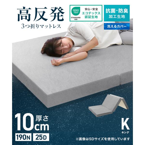 マットレス キング 三つ折り 高反発 折りたたみ 極厚10cm 安い