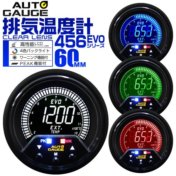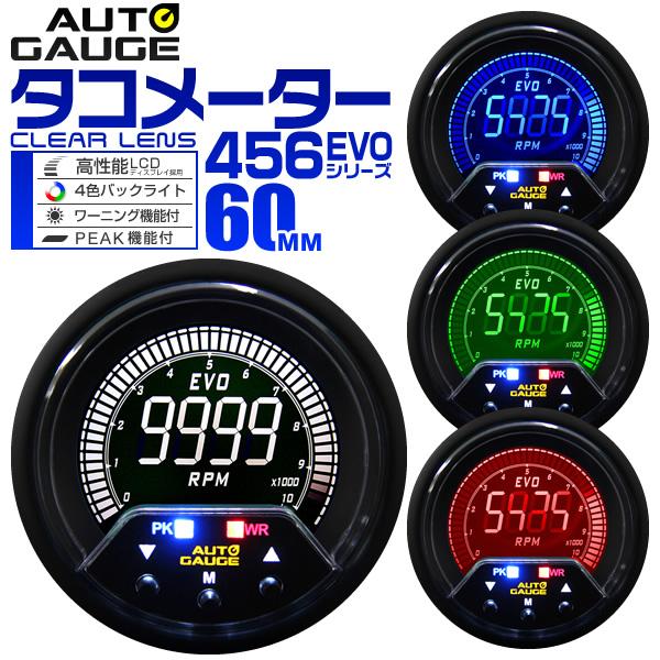 オートゲージ タコメーター 60mm 4色バックライト 456シリーズ 日本製ステッピングモーター ピークホールド ワーニング 追加メーター