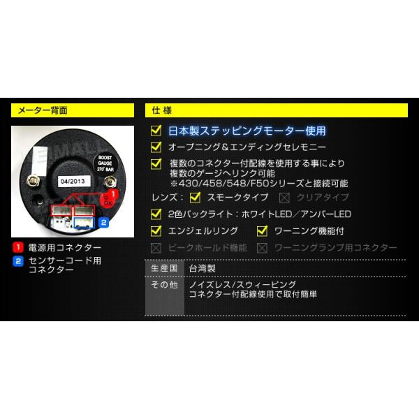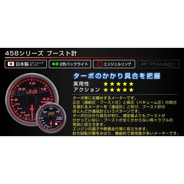 AUTOGAUGE オートゲージ ブースト計 60Φ エンジェルリング スモークレンズ LED ワーニング機能付 458シリーズ