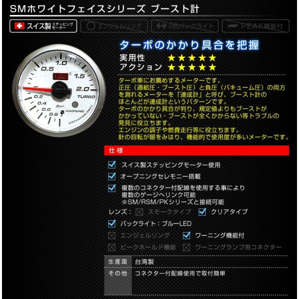 AUTOGAUGE オートゲージ ブースト計 SM60Φ ホワイトフェイス ブルーLED 車 メーター ターボ ワーニング機能付