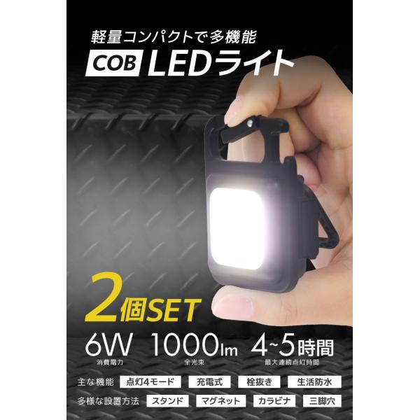 投光器 LED ライト 2個セット 小型 懐中電灯 ランタン 屋外 防水 充電式 COB 明るい 作業灯 ワークライト ミニ スタンド アウトドア 防災 軽量 照明