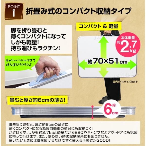 アルミテーブル 折りたたみ 70cm アウトドア キャ 爆買