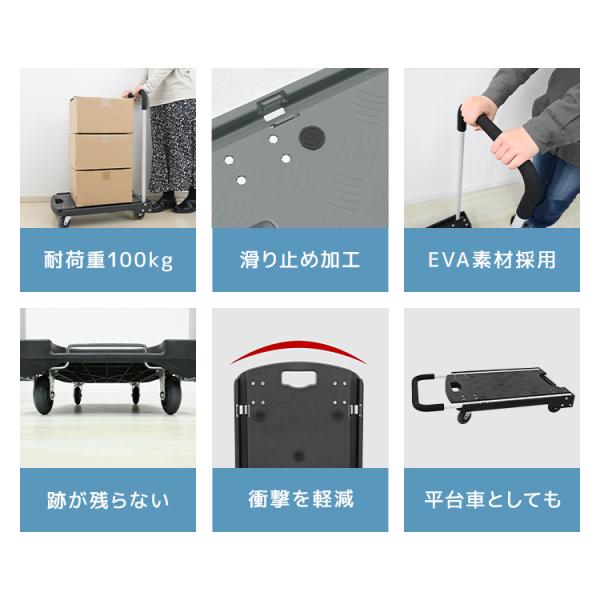 台車 平台車 折りたたみ 軽量 100kg キャスター付き台 静音台車 スリム キャリーカート