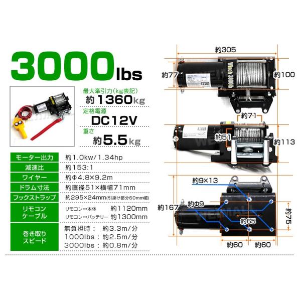 電動ウインチ 12V リモコン 3000LBS 136 爆買