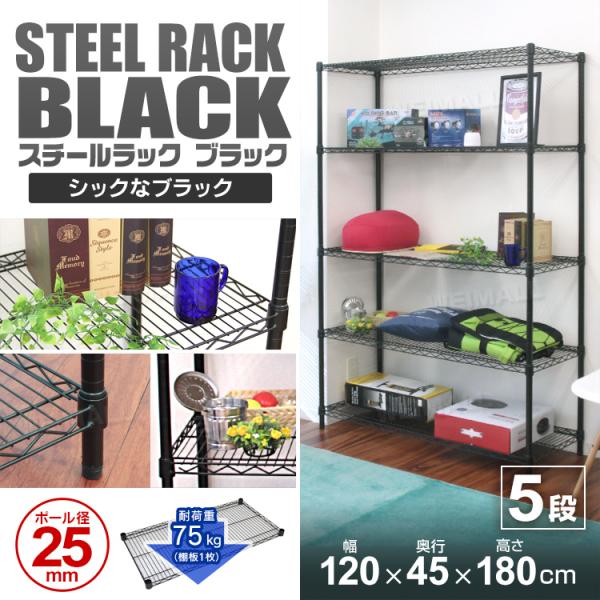 スチールラック メタル 製 ラック 幅120 5段 マットブラック シェルフ 収納ラック 収納棚 耐荷重 375kg 業務用 口コミ 高評価 便利 新生活