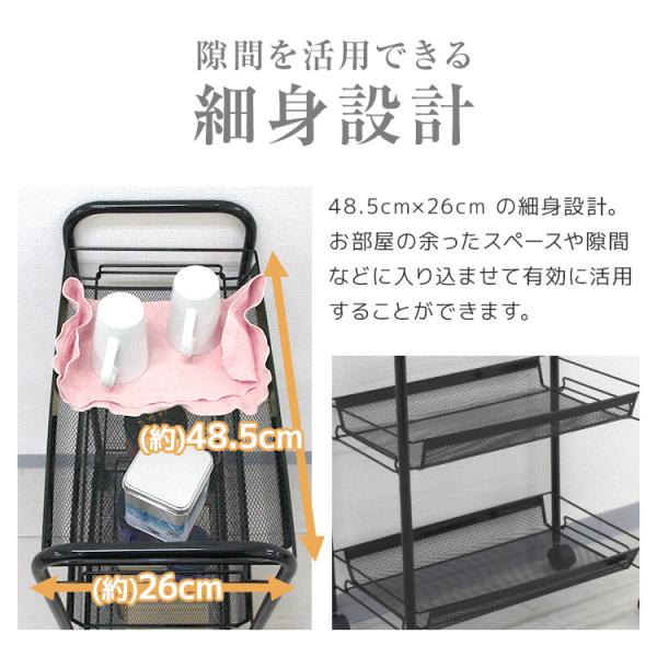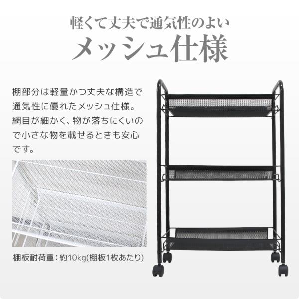 キッチンワゴン キャスター付き メッシュカート 3段 スチール 隙間収納 メタル キッチンラック 収納 ランドリー ワゴン 一人暮らし 新生活 工具 ツールワゴン