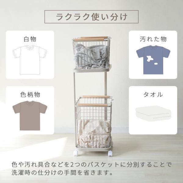それぞれのバスケットが取り外し可能で、洗濯物を簡単に持ち運べます