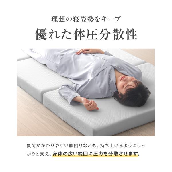 収納しやすい三つ折りタイプ!腰をやさしく支える高反発マットレスです。